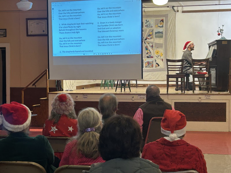 o have rehearsed in our Hall almost every Monday evening for at least 10 years have purchased a new set of risers for their singers. They are giving away their old ones–shown set up in the Grange Hall, with the hope of helping other groups who need a little help getting up in the world!