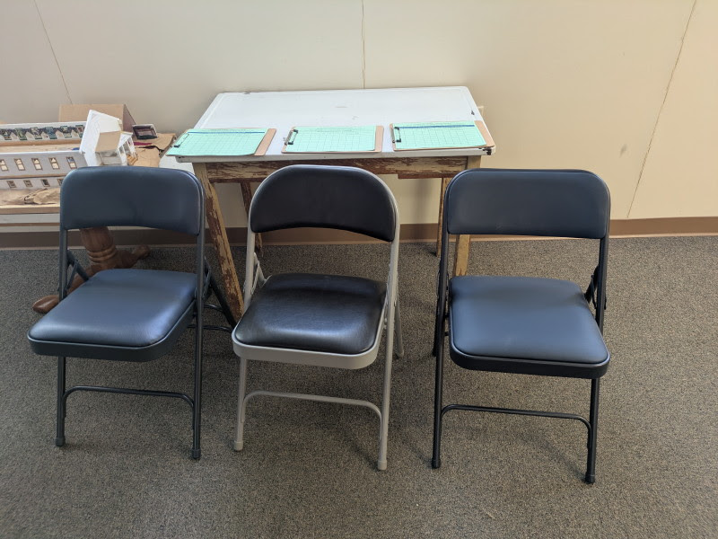 - We now have 3 choices of upholstered chairs we might purchase to upgrade the seating in our Hall. The 3 choices are pictured below. All have vinyl covered padded seats and backs–vinyl is recommended as the most durable choice. They are accompanied by “feedback sheets” where Hall users can rate the chairs for different features, so we can see what people with various body types, leg lengths, etc. like and don’t like about these choices. Please try out these chairs (they’re currently located in the Lower Level) and fill out a line on the form to let us know how they work for you! We’ll see if we are ready to make a choice at our March 7 meeting.